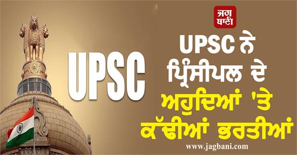 ਨਵੀਂ ਦਿੱਲੀ- ਸੰਘ ਲੋਕ ਸੇਵਾ ਕਮਿਸ਼ਨ (ਯੂਪੀਐੱਸਸੀ) ਨੇ ਪ੍ਰਿੰਸੀਪਲ ਦੇ ਅਹੁਦਿਆਂ 'ਤੇ ਭਰਤੀਆਂ ਕੱਢੀਆਂ ਹਨ। ਇਹ ਭਰਤੀ ਯੂਪੀ ਟੈਕਨੀਕਲ ਐਜੂਕੇਸ਼ਨ (ਟੀਚਿੰਗ) ਦੇ ਅਧੀਨ ਕੀਤੀ ਜਾਵੇਗੀ। ਉਮੀਦਵਾਰ ਅਧਿਕਾਰਤ ਵੈੱਬਸਾਈਟ 'ਤੇ ਜਾ ਕੇ ਅਪਲਾਈ ਕਰ ਸਕਦੇ ਹਨ।