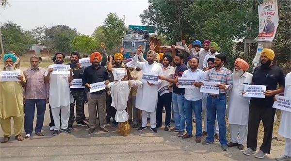 ਫ਼ਤਹਿਗੜ੍ਹ ਸਾਹਿਬ (ਬਿਪਨ): BBMB ਵੱਲੋਂ ਹਰਿਆਣਾ ਨੂੰ ਵਾਧੂ ਪਾਣੀ ਦੇਣ ਦੇ ਐਲਾਨ ਤੋਂ ਬਾਅਦ ਆਮ ਆਦਮੀ ਪਾਰਟੀ ਦੇ ਆਗੂਆਂ ਵੱਲੋਂ ਥਾਂ-ਥਾਂ 'ਤੇ ਕੇਂਦਰ ਸਰਕਾਰ ਖ਼ਿਲਾਫ਼ ਪ੍ਰਦਰਸ਼ਨ ਕੀਤੇ ਜਾ ਰਹੇ ਹਨ। ਇਸੇ ਤਹਿਤ ਜ਼ਿਲ੍ਹਾ ਫ਼ਤਹਿਗੜ੍ਹ ਸਾਹਿਬ ਦੇ ਹਲਕਾ ਬੱਸੀ ਪਠਾਣਾ ਤੋਂ ਵਿਧਾਇਕ ਰੁਪਿੰਦਰ ਸਿੰਘ ਹੈਪੀ ਵੱਲੋਂ ਸਾਥੀਆਂ ਸਣੇ ਬੱਸੀ ਪਠਾਣਾ ਵਿਖੇ ਕੇਂਦਰ ਸਰਕਾਰ ਖ਼ਿਲਾਫ਼ ਨਾਰੇਬਾਜ਼ੀ ਕਰਦਿਆਂ ਪੁਤਲਾ ਫੂਕ ਪ੍ਰਦਰਸ਼ਨ ਕੀਤਾ ਗਿਆ।