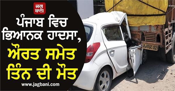 ਅਹਿਮਦਗੜ੍ਹ (ਇਰਫਾਨ, ਪੁਰੀ, ਸਾਹਿਲ) : ਐਤਵਾਰ ਦੇਰ ਰਾਤ ਲੁਧਿਆਣਾ ਤੋਂ ਮਲੇਰਕੋਟਲਾ ਜਾ ਰਹੀ ਕਾਰ ਦੇ ਇਕ ਟਰੱਕ ਨਾਲ ਟਕਰਾ ਜਾਣ ਕਾਰਨ ਤਿੰਨ ਵਿਅਕਤੀਆਂ ਦੀ ਮੌਕੇ 'ਤੇ ਹੀ ਮੌਤ ਹੋਣ ਦਾ ਸਮਾਚਾਰ ਮਿਲਿਆ ਹੈ। ਇਸ ਭਿਆਨਕ ਹਾਦਸੇ ਵਿਚ ਤਿੰਨ ਮੌਤਾਂ ਤੋਂ ਇਲਾਵਾ ਤਿੰਨ ਗੰਭੀਰ ਜ਼ਖ਼ਮੀ ਹੋ ਗਏ। ਜਿਨ੍ਹਾਂ ਨੂੰ ਲੁਧਿਆਣਾ ਵਿਖੇ ਹਸਪਤਾਲ ਦਾਖਲ ਕਰਵਾਇਆ ਗਿਆ ਹੈ। ਮ੍ਰਿਤਕਾਂ ਦੀ ਪਛਾਣ ਮਾਲੇਰਕੋਟਲਾ ਦੇ ਮੁਹੰਮਦ ਸ਼ਾਹਿਦ(31), ਰੋਹਿਤ ਵਰਮਾ(28) ਅਤੇ ਕੋਸਰ (40) ਵਜੋਂ ਹੋਈ ਹੈ। ਪੀੜਤ ਲੁਧਿਆਣਾ ਜ਼ਿਲ੍ਹੇ ਦੇ ਨਾਰੰਗਵਾਲ ਪਿੰਡ ਤੋਂ ਵਾਪਸ ਮਾਲੇਰਕੋਟਲਾ ਆ ਰਹੇ ਸਨ। ਅਹਿਮਦਗੜ੍ਹ ਥਾਣਾ ਸਦਰ ਦਰਸ਼ਨ ਸਿੰਘ ਨੇ ਦੱਸਿਆ ਕਿ ਮਾਰੂਤੀ ਆਈ-20 ਕਾਰ ਦੇ ਸੜਕ 'ਤੇ ਖੜ੍ਹੇ ਇਕ ਲੋਡ ਕੀਤੇ ਟਰੱਕ (ਆਰ ਜੇ 11 1321) ਨਾਲ ਟੱਕਰ ਹੋ ਗਈ। ਐੱਸਐੱਸਐੱਫ ਮਾਲੇਰਕੋਟਲਾ ਅਤੇ ਨਜ਼ਦੀਕ ਖੇਡ ਰਹੇ ਕੁਝ ਵਿਅਕਤੀ ਵਲੋਂ ਸਾਂਝੇ ਬਚਾਅ ਕਾਰਜ ਤੋਂ ਬਾਅਦ, ਪੀੜਤਾਂ ਨੂੰ ਮਾਲੇਰਕੋਟਲਾ ਦੇ ਸਿਵਲ ਹਸਪਤਾਲ ਵਿਚ ਤਬਦੀਲ ਕੀਤਾ ਗਿਆ ਜਿੱਥੇ ਤਿੰਨ ਵਿਅਕਤੀਆਂ ਨੂੰ ਮ੍ਰਿਤਕ ਐਲਾਨ ਦਿੱਤਾ ਗਿਆ।