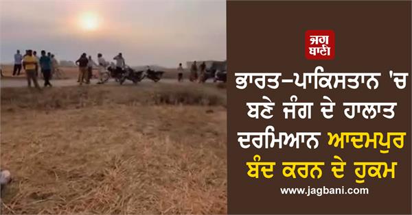 ਜਲੰਧਰ/ ਆਦਮਪੁਰ (ਵੈੱਬ ਡੈਸਕ)- ਭਾਰਤ ਅਤੇ ਪਾਕਿਸਤਾਨ ਵਿਚਾਲੇ ਬਣੇ ਜੰਗ ਦੇ ਹਾਲਾਤ ਲਗਾਤਾਰ ਵਿਗੜਦੇ ਜਾ ਰਹੇ ਹਨ। ਪਾਕਿਸਤਾਨ ਵੱਲੋਂ ਲਗਾਤਾਰ ਭਾਰਤ 'ਤੇ ਡਰੋਨ ਅਤੇ ਮਿਜ਼ਾਈਲਾਂ ਨਾਲ ਹਮਲੇ ਕੀਤੇ ਜਾ ਰਹੇ ਹਨ। ਅੱਜ ਦਿਨ ਚੜ੍ਹਦੇ ਹੀ ਪੰਜਾਬ ਦੇ ਕਈ ਸ਼ਹਿਰਾਂ ਵਿਚ ਪਾਕਿਸਤਾਨ ਵੱਲੋਂ ਹਮਲੇ ਕੀਤੇ ਗਏ। ਹਾਲਾਤ ਨੂੰ ਵੇਖਦੇ ਹੋਏ ਸਥਾਨਕ ਪ੍ਰਸ਼ਾਸਨ ਵੀ ਹਰਕਤ ਵਿਚ ਆ ਗਿਆ ਹੈ।