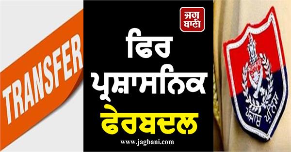ਪੰਜਾਬ ਪੁਲਸ ਵੱਲੋਂ 2 ਡੀ. ਐੱਸ. ਪੀ. ਬਦਲ ਦਿੱਤੇ ਗਏ ਹਨ। ਏ. ਸੀ. ਪੀ. ਜਲੰਧਰ ਸੈਂਟਰਲ ਨਿਰਮਲ ਸਿੰਘ ਨੂੰ ਡੀ. ਐੱਸ. ਪੀ. ਡਿਟੈਕਟਿਵ, ਐੱਸ. ਬੀ. ਐੱਸ. ਨਗਰ ਅਤੇ ਡੀ. ਐੱਸ. ਪੀ. ਡਿਟੈਕਟਿਵ, ਐੱਸ. ਬੀ. ਐੱਸ. ਨਗਰ ਅਮਨਦੀਪ ਸਿੰਘ ਨੂੰ ਏ. ਸੀ. ਪੀ. ਸੈਂਟਰਲ ਜਲੰਧਰ ਲਾਇਆ ਗਿਆ ਹੈ।