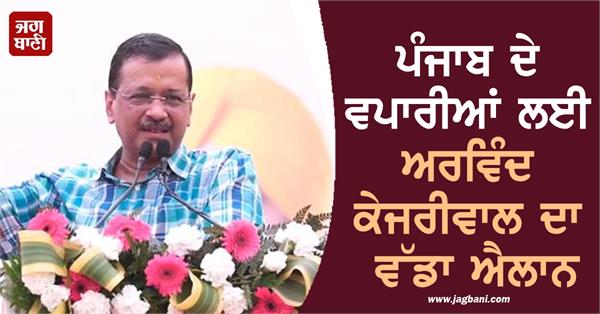 ਛੋਟੇ ਵਪਾਰੀਆਂ ਨੂੰ ਲੈ ਕੇ ਉਨ੍ਹਾਂ ਵੱਡਾ ਐਲਾਨ ਕਰਦੇ ਕਿਹਾ ਕਿ ਪੰਜਾਬ ਵਿਚ ਹਰ ਜ਼ਿਲ੍ਹੇ ਵਿਚ ਵਪਾਰੀਆਂ ਦੀਆਂ ਸਮੱਸਿਆਵਾਂ ਨੂੰ ਹਲ ਕਰਨ ਲਈ ਇਕ ਬੋਰਡ ਬਣਾਇਆ ਜਾਵੇਗਾ, ਜਿਸ ਕੋਲ ਵਪਾਰੀ ਆਪਣੀ ਹਰ ਸਮੱਸਿਆ ਨੂੰ ਲੈ ਕੇ ਜਾਣਗੇ ਅਤੇ ਬੋਰਡ ਵੱਲੋਂ ਉਨ੍ਹਾਂ ਦੀਆਂ ਸਮੱਸਿਆਵਾਂ ਨੂੰ ਹੱਲ ਕਰਵਾਇਆ ਜਾਵੇਗਾ। ਬੋਰਡ ਹਰ ਵਪਾਰੀ ਨੂੰ ਸੁਰੱਖਿਆ ਅਤੇ ਸਨਮਾਨ ਦੇਣ ਦਾ ਕੰਮ ਕਰੇਗਾ। ਅਰਵਿੰਦ ਕੇਜਰੀਵਾਲ ਨੇ ਕਿਹਾ ਕਿ ਜੇਕਰ ਵਪਾਰੀ ਨੂੰ ਕੋਈ ਵਿਧਾਇਕ, ਅਫ਼ਸਰ ਜਾਂ ਆਗੂ ਪਰੇਸ਼ਾਨ ਕਰਦਾ ਹੈ ਤਾਂ ਉਸ ਨੂੰ ਵੀ ਬਖ਼ਸ਼ਿਆ ਨਹੀਂ ਜਾਵੇਗਾ। ਇਸ ਦੇ ਨਾਲ ਹੀ ਉਨ੍ਹਾਂ ਵਪਾਰੀਆਂ ਨੂੰ ਈਮਾਨਦਾਰੀ ਨਾਲ ਕੰਮ ਕਰਨ ਦੀ ਗੱਲ ਆਖੀ ਅਤੇ ਕਿਹਾ ਕਿ ਗਾਹਕ ਦੇ ਨਾਲ ਕਦੇ ਬੇਈਮਾਨੀ ਨਾ ਕਰੋ।