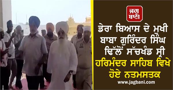 ਅੰਮ੍ਰਿਤਸਰ– ਰੂਹਾਨੀਅਤ ਦੇ ਕੇਂਦਰ ਸੱਚਖੰਡ ਸ੍ਰੀ ਹਰਿਮੰਦਰ ਸਾਹਿਬ ਵਿਖੇ ਅੱਜ ਡੇਰਾ ਬਿਆਸ ਦੇ ਮੁਖੀ ਬਾਬਾ ਗੁਰਿੰਦਰ ਸਿੰਘ ਢਿੱਲੋ ਨੇ ਨਤਮਸਤਕ ਹੋਏ। ਇਸ ਦੌਰਾਨ ਉਨ੍ਹਾਂ ਨੇ ਗੁਰਬਾਣੀ ਕੀਰਤਨ ਸਰਵਣ ਕੀਤਾ ਅਤੇ ਸਮੂਹ ਜਗਤ ਦੀ ਖੁਸ਼ਹਾਲੀ ਲਈ ਸਰਬੱਤ ਦੇ ਭਲੇ ਦੀ ਅਰਦਾਸ ਕੀਤੀ। ਉੱਥੇ ਹੀ ਉਨ੍ਹਾਂ ਨੇ ਮੀਡੀਆ ਤੋਂ ਪੂਰੀ ਤਰ੍ਹਾਂ ਦੂਰੀ ਬਣਾਈ ਰੱਖੀ ਅਤੇ ਕਿਸੇ ਵੀ ਤਸਵੀਰ ਜਾਂ ਬਿਆਨ ਤੋਂ ਗੁਰੇਜ਼ ਕੀਤਾ।