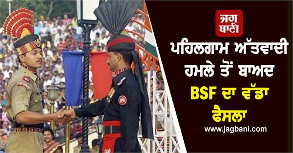 ਅੰਮ੍ਰਿਤਸਰ- ਪਹਿਲਗਾਮ ਹਮਲੇ ਤੋਂ ਬਾਅਦ ਭਾਰਤ ਸਰਕਾਰ ਅਤੇ ਬੀ. ਐੱਸ. ਐੱਫ਼. ਵੱਲੋਂ ਵੱਡਾ ਫੈਸਲਾ ਲਿਆ ਗਿਆ ਹੈ। ਦੱਸ ਦੇਈਏ ਕਿ ਬੀ. ਐੱਸ. ਐੱਫ਼. ਨੇ ਕਿਹਾ ਕਿ ਉਹ ਬੀਟਿੰਗ ਦੀ ਰੀਟ੍ਰੀਟ ਸੈਰਮਨੀ ਤੋਂ ਬਾਅਦ ਹੱਥ ਨਹੀਂ ਮਿਲਾਉਣਗੇ। ਇਸ ਤੋਂ ਇਲਾਵਾ ਅਟਾਰੀ, ਹੁਸੈਨੀਵਾਲਾ ਤੇ ਸਾਦਕੀ ਬਾਰਡਰ ਦੇ ਗੇਟ ਬੰਦ ਰਹਿਣਗੇ।