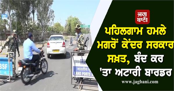 ਇਸ ਦੌਰਾਨ ਅਟਾਰੀ ਵਾਹਗਾ 'ਤੇ ਵੱਡੀ ਗਿਣਤੀ 'ਚ ਫੌਜ ਤਾਇਨਾਤ ਕੀਤੀ ਗਈ ਹੈ। ਜਿਹੜੇ ਸੈਲਾਨੀ ਅਕਸਰ ਰਿਟ੍ਰੀਟ ਸੈਰਾਮਨੀ ਵੇਖਣ ਲਈ ਆ ਰਹੇ ਸਨ ਹੁਣ ਉਨ੍ਹਾਂ ਇੱਥੋਂ ਹੀ ਵਾਪਸ ਜਾਣ ਦੇ ਹੁਕਮ ਦਿੱਤੇ ਗਏ ਹਨ। ਇਸ ਦੌਰਾਨ ਸੈਲਾਨੀਆਂ ਦਾ ਕਹਿਣਾ ਹੈ ਕਿ ਭਾਰਤ ਸਰਕਾਰ ਦਾ ਇਹ ਫੈਸਲਾ ਵਧੀਆ ਹੈ। ਪਹਿਲਗਾਮ 'ਚ ਜੋ ਕੁਝ ਹੋਇਆ ਹੈ ਉਸ ਨੂੰ ਵੇਖਦੇ ਹੋਏ ਸਖ਼ਤ ਫੈਸਲਾ ਲੈਣਾ ਜ਼ਰੂਰੀ ਹੈ।
