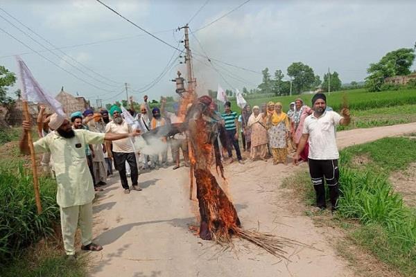 ਟਾਂਡਾ ਉੜਮੁੜ (ਵਰਿੰਦਰ ਪੰਡਿਤ, ਕੁਲਦੀਸ਼) : ਕਿਸਾਨ-ਮਜ਼ਦੂਰ ਸੰਘਰਸ਼ ਕਮੇਟੀ ਪੰਜਾਬ ਦੇ ਨਾਲ ਜੁੜੇ ਕਿਸਾਨਾਂ ਨੇ ਅੱਜ ਕਰਨਾਲ ਵਿੱਚ ਕਿਸਾਨਾਂ 'ਤੇ ਹੋਏ ਅੱਤਿਆਚਾਰਾਂ ਦਾ ਵਿਰੋਧ ਕਰਦਿਆਂ ਖੱਟੜ ਸਰਕਾਰ ਦਾ ਪੁਤਲਾ ਸਾੜਿਆ। ਅਰਵਿੰਦਰ ਸਿੰਘ ਰਾਣਾ ਦੀ ਅਗਵਾਈ ਵਿੱਚ ਲਾਏ ਇਸ ਧਰਨੇ ਦੌਰਾਨ ਜੱਥੇਬੰਦੀ ਦੇ ਸੂਬਾਈ ਆਗੂ ਸਵਿੰਦਰ ਸਿੰਘ ਚੁਤਾਲਾ ਅਤੇ ਟਾਂਡਾ ਜ਼ੋਨ ਪ੍ਰਧਾਨ ਪਰਮਜੀਤ ਸਿੰਘ ਭੁੱਲਾ ਦੇ ਦਿਸ਼ਾ-ਨਿਰਦੇਸ਼ਾਂ ਹੇਠ ਕਿਸਾਨਾਂ ਨੇ ਖੇਤੀਬਾੜੀ ਕਾਨੂੰਨਾਂ ਅਤੇ ਕਿਸਾਨਾਂ 'ਤੇ ਕਰਨਾਲ ਵਿੱਚ ਹੋਏ ਦਮਨ ਦਾ ਹਵਾਲਾ ਦਿੰਦਿਆਂ ਮੋਦੀ ਅਤੇ ਖੱਟੜ ਦੀਆਂ ਭਾਜਪਾ ਸਰਕਾਰਾਂ ਵਿਰੁੱਧ ਰੋਸ ਪ੍ਰਦਰਸ਼ਨ ਕੀਤਾ।