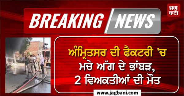 ਅੰਮ੍ਰਿਤਸਰ (ਗੁਰਪ੍ਰੀਤ): ਅੰਮ੍ਰਿਤਸਰ ਦੇ ਅਣਗੜ੍ਹ ਇਲਾਕੇ 'ਚ ਇੱਕ ਪੇਂਟ ਬਣਾਉਣ ਵਾਲੀ ਫੈਕਟਰੀ 'ਚ ਅੱਜ ਸਵੇਰੇ ਭਿਆਨਕ ਅੱਗ ਲੱਗਣ ਕਾਰਨ ਇਲਾਕੇ 'ਚ ਹੜਕੰਪ ਮਚ ਗਿਆ। ਫੈਕਟਰੀ ਅੰਦਰ ਮੌਜੂਦ ਕੈਮੀਕਲ ਅਤੇ ਪੇਂਟ ਦੇ ਕਾਰਨ ਅੱਗ ਨੇ ਤੇਜ਼ੀ ਨਾਲ ਭਿਆਨਕ ਰੂਪ ਧਾਰ ਲਿਆ। ਅੱਗ ਲੱਗਣ ਕਾਰਨ ਫੈਕਟਰੀ ਅੰਦਰ ਮੌਜੂਦ ਦੋ ਵਿਅਕਤੀਆਂ ਦੀ ਮੌਤ ਹੋ ਚੁੱਕੀ ਹੈ, ਹਾਲਾਂਕਿ ਅਧਿਕਾਰਕ ਪੁਸ਼ਟੀ ਅਜੇ ਤੱਕ ਨਹੀਂ ਹੋਈ। ਫਿਲਹਾਲ ਅੱਗ ਲੱਗਣ ਦੇ ਕਾਰਨ ਦਾ ਪਤਾ ਨਹੀਂ ਲੱਗ ਸਕਿਆ।