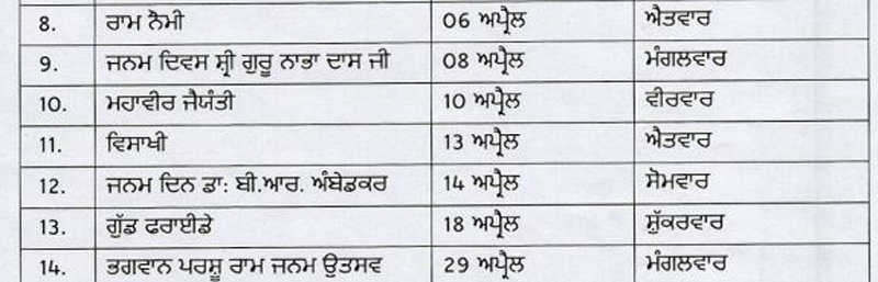 ਜਲੰਧਰ/ਚੰਡੀਗੜ੍ਹ (ਵੈੱਬ ਡੈਸਕ)- ਵਿਦਿਆਰਥੀਆਂ ਸਣੇ ਸਰਕਾਰੀ ਮੁਲਾਜ਼ਮਾਂ ਲਈ ਅਪ੍ਰੈਲ ਮਹੀਨਾ ਮੌਜਾਂ ਭਰਿਆ ਰਿਹਾ ਹੈ, ਕਿਉਂਕਿ ਇਸ ਵਿਚ ਇਕ ਤੋਂ ਬਾਅਦ ਇਕ ਕਈ ਛੁੱਟੀਆਂ ਆਉਂਦੀਆਂ ਰਹੀਆਂ ਹਨ। ਇਸ ਮਹੀਨੇ ਪੰਜਾਬ ਵਿਚ ਕੁੱਲ੍ਹ 7 ਸਰਕਾਰੀ ਛੁੱਟੀਆਂ ਆਈਆਂ। ਹਾਲਾਂਕਿ ਇਸ ਵਿਚੋਂ ਕਈ ਛੁੱਟੀਆਂ ਐਤਵਾਰ ਨੂੰ ਵੀ ਆਈਆਂ। ਕਈ ਲੋਕਾਂ ਨੂੰ 18, 19 ਅਤੇ 20 ਅਪ੍ਰੈਲ ਨੂੰ ਲੰਮੇ ਵੀਕੈਂਡ ਦਾ ਫ਼ਾਇਦਾ ਲੈਣ ਦਾ ਮੌਕਾ ਵੀ ਮਿਲਿਆ। ਇਸ ਮਗਰੋਂ ਇਸ ਮਹੀਨੇ ਇਕ ਹੋਰ ਸਰਕਾਰੀ ਛੁੱਟੀ ਆ ਗਈ ਹੈ।