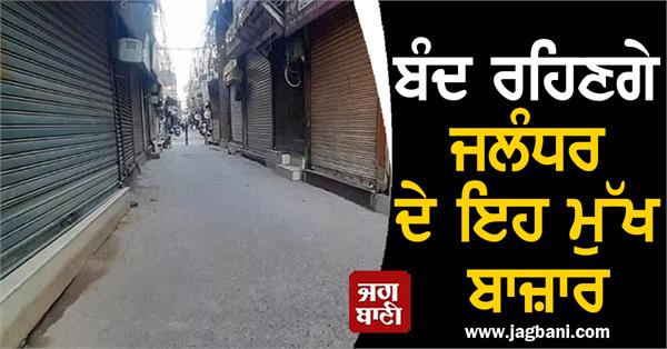 ਜਲੰਧਰ: ਜਲੰਧਰ ਸ਼ਹਿਰ ਦੇ ਮੁੱਖ ਬਾਜ਼ਾਰ, ਜਿੱਥੇ ਅਕਸਰ ਲੋਕ ਵੱਡੀ ਗਿਣਤੀ ਵਿਚ ਸ਼ਾਪਿੰਗ ਕਰਨ ਲਈ ਜਾਂਦੇ ਹਨ, ਉਹ ਸ਼ੁੱਕਰਵਾਰ ਨੂੰ ਬੰਦ ਰਹਿਣਗੇ। ਦੁਕਾਨਦਾਰਾਂ ਵੱਲੋਂ ਹੋਲੀ ਦੇ ਮੱਦੇਨਜ਼ਰ ਇਹ ਫ਼ੈਸਲਾ ਲਿਆ ਗਿਆ ਹੈ।