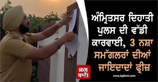 ਅੰਮ੍ਰਿਤਸਰ (ਆਰ. ਗਿੱਲ)- ਯੁੱਧ ਨਸ਼ੇ ਵਿਰੁੱਧ ਅਭਿਆਨ ਤਹਿਤ ਅੰਮ੍ਰਿਤਸਰ ਦਿਹਾਤੀ ਪੁਲਸ ਨੇ ਵੱਡੀ ਕਾਰਵਾਈ ਕਰਦਿਆਂ ਤਿੰਨ ਨਸ਼ਾ ਸਮੱਗਲਰਾਂ ਦੀ ਜਾਇਦਾਦ ਜ਼ਬਤ ਕਰ ਕੇ ਉਨ੍ਹਾਂ ’ਤੇ ਇਸ਼ਤਿਹਾਰ ਚਿਪਕਾ ਦਿੱਤੇ ਹਨ। ਦਿਹਾਤੀ ਪੁਲਸ ਵੱਲੋਂ 1 ਕਰੋੜ 30 ਲੱਖ 18 ਹਜ਼ਾਰ ਦੀ ਜਾਇਦਾਦ ਫ੍ਰੀਜ਼ ਕਰ ਦਿੱਤੀ ਗਈ ਹੈ। ਅੰਮ੍ਰਿਤਸਰ ਦਿਹਾਤੀ ਪੁਲਸ ਦੇ ਘਰਿੰਡਾ ਥਾਣੇ ਵੱਲੋਂ ਨਸ਼ਾ ਸਮੱਗਲਰਾਂ ਖਿਲਾਫ ਤਹਿਤ ਦਰਜ ਵੱਖ-ਵੱਖ ਮੁਕੱਦਮਿਆਂ ਵਿਚ ਸਵਰਨ ਸਿੰਘ ਪੁੱਤਰ ਸੁਖਦੇਵ ਸਿੰਘ ਉਰਫ ਗੁੱਲਾ ਵਾਸੀ ਲੱਧੇਵਾਲ, ਸੇਵਾ ਸਿੰਘ ਪੁੱਤਰ ਵੱਸਣ ਸਿੰਘ ਅਤੇ ਲਵਪ੍ਰੀਤ ਸਿੰਘ ਪੁੱਤਰ ਕਰਤਾਰ ਸਿੰਘ ਵਾਸੀਆਨ ਮੁਹਾਵਾ ਦੀ 01 ਕਰੋੜ 30 ਲੱਖ 18 ਹਜ਼ਾਰ ਰੁਪਏ ਕੀਮਤ ਦੀ ਪ੍ਰਾਪਰਟੀ ਨੂੰ ਫ੍ਰੀਜ ਕਰਵਾ ਦਿੱਤਾ ਗਿਆ।