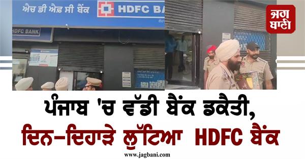 ਫਗਵਾੜਾ (ਮੁਨੀਸ਼, ਸੋਨੂੰ)- ਫਗਵਾੜਾ ਵਿਚ ਵੱਡੀ ਵਾਰਦਾਤ ਹੋਣ ਦੀ ਖ਼ਬਰ ਸਾਹਮਣੇ ਆਈ ਹੈ। ਦਰਅਸਲ ਇਥੇ ਐੱਚ. ਡੀ. ਐੱਫ਼. ਸੀ. ਬੈਂਕ ਲੁਟੇਰਿਆਂ ਵੱਲੋਂ ਨਿਸ਼ਾਨਾ ਬਣਾਇਆ ਗਿਆ ਅਤੇ ਲੁੱਟ ਦੀ ਵੱਡੀ ਵਾਰਦਾਤ ਨੂੰ ਅੰਜਾਮ ਦਿੱਤਾ ਗਿਆ। ਉਕਤ ਵਾਰਦਾਤ ਨੂੰ ਅੰਜਾਮ ਤਿੰਨ ਲੁਟੇਰਿਆਂ ਵੱਲੋਂ ਪਿਸਤੌਲ ਦੀ ਨੋਕ 'ਤੇ ਬੈਂਕ ਅੰਦਰ ਦਾਖ਼ਲ ਹੋ ਕੇ ਦਿੱਤਾ ਗਿਆ। ਘਟਨਾ ਦੀ ਸੂਚਨਾ ਪਾ ਕੇ ਮੌਕੇ ਉਤੇ ਪਹੁੰਚੀ ਪੁਲਸ ਨੇ ਅਗਲੇਰੀ ਜਾਂਚ ਸ਼ੁਰੂ ਕਰ ਦਿੱਤੀ ਹੈ। ਦੱਸਿਆ ਜਾ ਰਿਹਾ ਹੈ ਕਿ ਕਰੀਬ 40 ਲੱਖ ਦੀ ਲੁੱਟ ਦੀ ਵਾਰਦਾਤ ਨੂੰ ਅੰਜਾਮ ਦਿੱਤਾ ਗਿਆ ਹੈ।