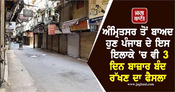 ਇਹ ਵੀ ਪੜ੍ਹੋ- ਪੰਜਾਬ ਦੀ ਮਸ਼ਹੂਰ ਕੱਪੜਾ ਮਾਰਕੀਟ ਬਾਜ਼ਾਰ 3 ਦਿਨ ਲਈ ਬੰਦ