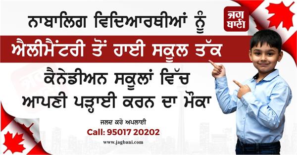 ਇੰਟਰਨੈਸ਼ਨਲ ਡੈਸਕ- ਜੇਕਰ ਤੁਹਾਡਾ ਬੱਚਾ ਵੀ ਕੈਨੇਡਾ ਦੇ ਸਕੂਲ ਵਿੱਚ ਜਾ ਕੇ ਪੜ੍ਹਨਾ ਚਾਹੁੰਦਾ ਹੈ ਤੇ ਕੈਨੇਡੀਅਨ ਮਾਈਨਰ ਸਟੱਡੀ ਵੀਜ਼ਾ ਬਹੁਤ ਸਾਰੇ ਫ਼ਾਇਦਿਆਂ ਦੀ ਪੇਸ਼ਕਸ਼ ਕਰਦਾ ਹੈ। ਇਹ ਵੀਜ਼ਾ ਮਾਰਗ 4 ਤੋਂ 17 ਸਾਲ ਦੀ ਉਮਰ ਦੇ ਵਿਦਿਆਰਥੀਆਂ ਨੂੰ ਐਲੀਮੈਂਟਰੀ ਤੋਂ ਲੈ ਕੇ ਹਾਈ ਸਕੂਲ ਤੱਕ, ਕੈਨੇਡੀਅਨ ਸਕੂਲਾਂ ਵਿੱਚ ਆਪਣੀ ਪੜ੍ਹਾਈ ਕਰਨ ਦੀ ਇਜਾਜ਼ਤ ਦਿੰਦਾ ਹੈ। ਤੁਹਾਡੇ ਬੱਚੇ ਨੂੰ ਇੱਕ ਵਿਸ਼ਵ-ਪੱਧਰੀ ਸਿੱਖਿਆ ਪ੍ਰਾਪਤ ਹੋਵੇਗੀ ਜੋ ਵਿਸ਼ਵ ਪੱਧਰ 'ਤੇ ਮਾਨਤਾ ਪ੍ਰਾਪਤ ਹੈ। ਇਹ ਵੀਜ਼ਾ ਬੱਚਿਆਂ ਨੂੰ ਉਹਨਾਂ ਦੇ ਭਵਿੱਖ ਦੇ ਯਤਨਾਂ ਵਿੱਚ ਇੱਕ ਪ੍ਰਤੀਯੋਗੀ ਕਿਨਾਰਾ ਪ੍ਰਦਾਨ ਕਰੇਗਾ। ਜੇਕਰ ਤੁਸੀਂ ਵੀ ਆਪਣੇ ਬੱਚੇ ਨੂੰ ਕੈਨੇਡਾ ਦੇ ਸਕੂਲ ਵਿੱਚ ਪੜ੍ਹਾਉਣਾ ਚਾਹੁੰਦੇ ਹੋ ਤਾਂ ਦਿੱਤੇ ਗਏ ਨੰਬਰ 95017-20202 ਤੇ ਸੰਪਰਕ ਕਰ ਸਕਦੇ ਹੋ।