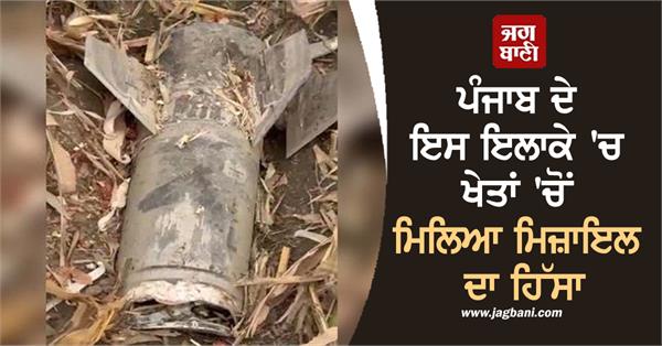 ਭੋਗਪੁਰ (ਸੂਰੀ)-ਥਾਣਾ ਭੋਗਪੁਰ ਦੇ ਜਮਾਲਪੁਰ ਪਿੰਡ ਵਿਚ ਉਸ ਸਮੇਂ ਸਨਸਨੀ ਫੈਲ ਗਈ ਜਦੋਂ ਪਿੰਡ ਦੇ ਇਕ ਕਿਸਾਨ, ਜਿਸ ਨੇ ਆਪਣੇ ਖੇਤ ’ਚ ਮੱਕੀ ਦੀ ਫ਼ਸਲ ਬੀਜੀ ਹੋਈ ਸੀ, ਵਿਚੋਂ ਮਿਜਾਇਲ ਦਾ ਹਿੱਸਾ ਪਿਆ ਵੇਖਿਆ। ਜਾਣਕਾਰੀ ਅਨੁਸਾਰ ਖੇਤ ਮਾਲਕ ਅਮਰਜੀਤ ਸਿੰਘ ਪੁੱਤਰ ਤੇਜਾ ਸਿੰਘ ਵਾਸੀ ਪਿੰਡ ਰੇਰੂ ਜ਼ਿਲ੍ਹਾ ਜਲੰਧਰ ਐਤਵਾਰ ਸਵੇਰੇ ਪਿੰਡ ਜਮਾਲਪੁਰ ਵਿਖੇ ਮੱਕੀ ਦੀ ਫ਼ਸਲ ਵਾਲੇ ਖੇਤ ਵਿਚ ਗਿਆ ਸੀ, ਜਿੱਥੇ ਉਸ ਨੇ ਖੇਤ ’ਚ ਮਿਜ਼ਾਇਲ ਦਾ ਹਿੱਸਾ ਪਿਆ ਵੇਖਿਆ।