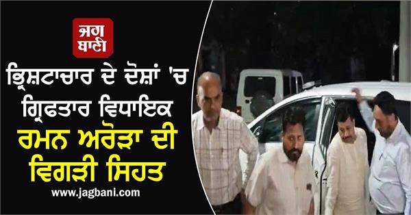 ਜਲੰਧਰ (ਮਹਾਜਨ) : ਪੰਜਾਬ ਵਿੱਚ ਭ੍ਰਿਸ਼ਟਾਚਾਰ ਦੇ ਮਾਮਲੇ ਵਿੱਚ ਗ੍ਰਿਫ਼ਤਾਰ ਕੀਤੇ ਗਏ ਵਿਧਾਇਕ ਰਮਨ ਅਰੋੜਾ ਦੀ ਸਿਹਤ ਵਿਜੀਲੈਂਸ ਹਿਰਾਸਤ ਵਿੱਚ ਅਚਾਨਕ ਵਿਗੜ ਗਈ ਹੈ। ਸਿਵਲ ਹਸਪਤਾਲ ਜਲੰਧਰ ਤੋਂ ਇੱਕ ਟੀਮ ਨੂੰ ਇਲਾਜ ਲਈ ਵਿਜੀਲੈਂਸ ਦਫ਼ਤਰ, ਜਲੰਧਰ ਭੇਜਿਆ ਗਿਆ। ਇਸ ਤੋਂ ਬਾਅਦ ਉਨ੍ਹਾਂ ਨੂੰ ਸਿਵਲ ਹਸਪਤਾਲ ਲਿਆਂਦਾ ਗਿਆ ਹੈ। ਸੂਤਰਾਂ ਮੁਤਾਬਕ ਉਨ੍ਹਾਂ ਨੂੰ ਸਾਹ ਲੈਣ ਵਿਚ ਪਰੇਸ਼ਾਨੀ ਦੇ ਚੱਲਦਿਆਂ ਹਸਪਤਾਲ ਲਿਆਂਦਾ ਗਿਆ ਹੈ।