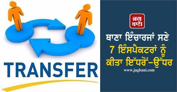 ਚੰਡੀਗੜ੍ਹ (ਪ੍ਰੀਕਸ਼ਿਤ) : ਚੰਡੀਗੜ੍ਹ ਪੁਲਸ ਵਿਭਾਗ 'ਚ ਸ਼ੁੱਕਰਵਾਰ ਨੂੰ ਇੱਕ ਵਾਰ ਫਿਰ ਸਾਈਬਰ ਥਾਣਾ ਇੰਚਾਰਜ ਅਤੇ 3 ਥਾਣਿਆਂ ਦੇ ਐੱਸ. ਐੱਚ. ਓ. ਸਮੇਤ 7 ਇੰਸਪੈਕਟਰਾਂ ਨੂੰ ਇੱਕ ਥਾਂ ਤੋਂ ਦੂਜੀ ਥਾਂ ਤਬਦੀਲ ਕਰ ਦਿੱਤਾ ਗਿਆ ਹੈ। ਪੁਲਸ ਹੈੱਡਕੁਆਰਟਰ ਵੱਲੋਂ ਸਾਈਬਰ ਥਾਣਾ ਇੰਚਾਰਜ, ਸੈਕਟਰ-19 ਐੱਸ. ਐੱਚ. ਓ., ਇੰਡਸਟਰੀਅਲ ਏਰੀਆ ਐੱਸ. ਐੱਚ. ਓ. ਅਤੇ ਆਈ. ਟੀ. ਪਾਰਕ ਥਾਣਾ ਦੇ ਐੱਸ. ਐੱਚ. ਓ. ਨੂੰ ਬਦਲ ਦਿੱਤਾ ਗਿਆ ਹੈ ਅਤੇ ਉਨ੍ਹਾਂ ਦੀ ਜਗ੍ਹਾ ਨਵੇਂ ਇੰਸਪੈਕਟਰ ਨੂੰ ਥਾਣਾ ਇੰਚਾਰਜ ਦਾ ਚਾਰਜ ਦਿੱਤਾ ਗਿਆ ਹੈ।
