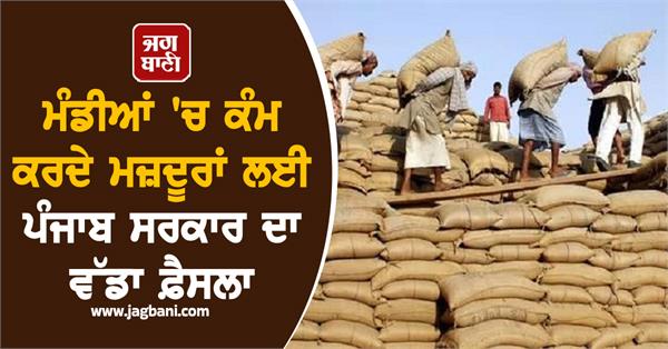 ਚੰਡੀਗੜ੍ਹ/ਜਲੰਧਰ (ਅੰਕੁਰ, ਧਵਨ) : ਮੰਡੀਆਂ ’ਚ ਢੋਆ-ਢੁਆਈ ਦੇ ਕੰਮ ’ਚ ਲੱਗੇ ਮਜ਼ਦੂਰਾਂ ਦੀ ਭਲਾਈ ਦੇ ਮਕਸਦ ਨਾਲ ਪੰਜਾਬ ਸਰਕਾਰ ਵਲੋਂ ਮਹੱਤਵਪੂਰਨ ਫ਼ੈਸਲਾ ਲਿਆ ਗਿਆ ਹੈ। ਇਸ ਤਹਿਤ ਖ਼ੁਰਾਕ, ਸਿਵਲ ਸਪਲਾਈ ਅਤੇ ਖ਼ਪਤਕਾਰ ਮਾਮਲਿਆਂ ਬਾਰੇ ਮੰਤਰੀ ਲਾਲ ਚੰਦ ਕਟਾਰੂਚੱਕ ਨੇ ਵੀਰਵਾਰ ਨੂੰ ਪੰਜਾਬ ਮੰਡੀ ਬੋਰਡ ਅਤੇ ਸੂਬਾ ਪੱਧਰੀ ਕਮੇਟੀ ਦੀਆਂ ਪ੍ਰਵਾਨਿਤ ਦਰਾਂ ਅਨੁਸਾਰ ਅਜਿਹੇ ਮਜ਼ਦੂਰਾਂ ਨੂੰ ਵਧੀ ਹੋਈ ਮਜ਼ਦੂਰੀ ਦੇ ਭੁਗਤਾਨ ਵਜੋਂ 373.81 ਕਰੋੜ ਰੁਪਏ ਦੀ ਰਾਸ਼ੀ ਪ੍ਰਵਾਨ ਕੀਤੀ ਗਈ ਹੈ।
