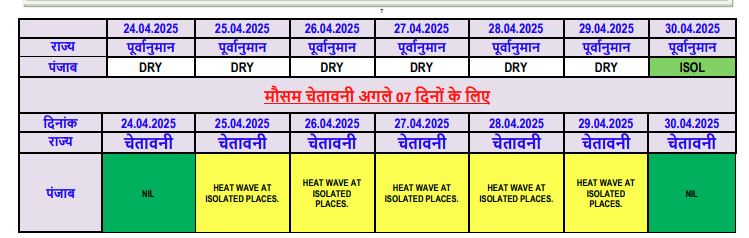30 ਅਪ੍ਰੈਲ ਨੂੰ ਬਾਰਿਸ਼ ਦੀ ਸੰਭਾਵਨਾ