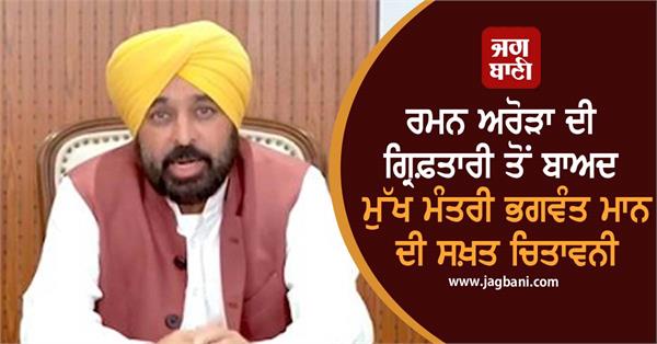 ਚੰਡੀਗੜ੍ਹ/ਜਲੰਧਰ : ਭ੍ਰਿਸ਼ਟਾਚਾਰ ਦੇ ਮਾਮਲੇ ਵਿਚ ਜਲੰਧਰ ਸੈਂਟਰਲ ਤੋਂ ਵਿਧਾਇਕ ਰਮਨ ਅਰੋੜਾ ਖ਼ਿਲਾਫ ਕਾਰਵਾਈ ਕਰਨ ਤੋਂ ਬਾਅਦ ਮੁੱਖ ਮੰਤਰੀ ਭਗਵੰਤ ਸਿੰਘ ਮਾਨ ਨੇ ਸਖ਼ਤ ਸ਼ਬਦਾਂ ਵਿਚ ਆਖਿਆ ਹੈ ਕਿ ਭ੍ਰਿਸ਼ਟਾਚਾਰ ਕਿਸੇ ਕੀਮਤ 'ਤੇ ਬਰਦਾਸ਼ਤ ਨਹੀਂ ਕਰਾਂਗੇ। ਭਾਵੇਂ ਕੋਈ ਵੀ ਹੋਵੇ, ਕਿਸੇ ਵੀ ਅਹੁਦੇ 'ਤੇ ਕਿਉਂ ਨਾ ਹੋਵੇ, ਬਖਸ਼ਿਆ ਨਹੀਂ ਜਵੇਗਾ। ਮੁੱਖ ਮੰਤਰੀ ਨੇ ਕਿਹਾ ਕਿ ਅੱਜ ਇਕ ਵਾਰ ਫਿਰ ਆਮ ਜਨਤਾ ਨੂੰ ਇਹ ਪਤਾ ਲੱਗ ਗਿਆ ਹੈ ਕਿ ਆਮ ਆਦਮੀ ਪਾਰਟੀ ਦੀ ਸਰਕਾਰ ਇਹ ਨਹੀਂ ਦੇਖਦੀ ਕਿ ਭ੍ਰਿਸ਼ਟਾਚਾਰ ਕੌਣ ਕਰ ਰਿਹਾ ਹੈ, ਭਾਵੇਂ ਉਹ ਆਪਣਾ ਹੋਵੇ ਜਾਂ ਬੇਗਾਨਾ ਜੇ ਭ੍ਰਿਸ਼ਟਾਚਾਰ ਕਰੇਗਾ ਤਾਂ ਉਸ 'ਤੇ ਕਾਰਵਾਈ ਹੋਵੇਗੀ।