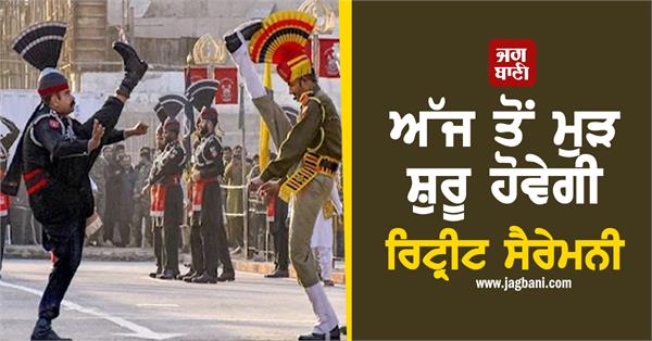 ਹੁਣ ਜਦੋਂ ਜੰਗਬੰਦੀ ਮਗਰੋਂ ਦੋਵਾਂ ਦੇਸ਼ਾਂ ਵਿਚਾਲੇ ਹਾਲਤ ਸਥਿਰ ਹਨ ਤਾਂ ਦੋਵਾਂ ਦੇਸ਼ਾਂ ਵਿਚਾਲੇ ਰਿਟ੍ਰੀਟ ਸੈਰੇਮਨੀ ਦੁਬਾਰਾ ਸ਼ੁਰੂ ਹੋਣ ਜਾ ਰਹੀ ਹੈ। ਅਟਾਰੀ-ਵਾਹਗਾ, ਹੁਸੈਨੀਵਾਲਾ ਤੇ ਸਾਦਕੀ ਬਾਰਡਰ 'ਤੇ ਰਿਟ੍ਰੀਟ ਸੈਰੇਮਨੀ ਅੱਜ ਸ਼ਾਮ 6 ਵਜੇ ਸ਼ੁਰੂ ਹੋ ਜਾਵੇਗੀ। ਹਾਲਾਂਕਿ ਅੱਜ ਦੇ ਦਿਨ ਸਿਰਫ਼ ਮੀਡੀਆ ਨਾਲ ਜੁੜੇ ਲੋਕ ਹੀ ਇਸ 'ਚ ਸ਼ਾਮਲ ਹੋ ਸਕਣਗੇ, ਜਦਕਿ ਭਲਕੇ (ਬੁੱਧਵਾਰ) ਤੋਂ ਆਮ ਲੋਕ ਵੀ ਪਹਿਲਾਂ ਵਾਂਗ ਰਿਟ੍ਰੀਟ ਸੈਰੇਮਨੀ ਦੇਖਣ ਜਾ ਸਕਣਗੇ।