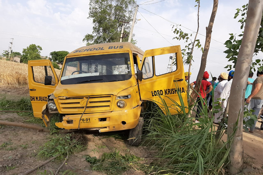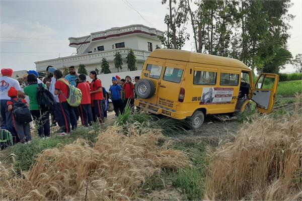 ਪਿੰਡ ਫੌਜੀ ਕਾਲੌਨੀ ਦੇ ਸਰਪੰਚ ਗੁਰਪ੍ਰੀਤ ਸਿੰਘ ਨੇ ਦੱਸਿਆ ਕਿ ਸਕੂਲ ਬੱਸ ਬਹੁਤ ਹੀ ਖਸਤਾ ਹਾਲਤ ਅਤੇ ਪੁਰਾਣੀ ਹੋਣ 'ਤੇ ਬਰੇਕ ਨਾਂ ਲੱਗਣ ਕਾਰਨ ਸ਼ੜਕ ਦੇ ਇਕ ਪਾਸੇ ਖੇਤ ਵੱਲ ਉੱਤਰ ਗਈ ਅਤੇ ਇਕ ਸਫੈਦੇ ਦੇ ਦਰੱਖਤ ਨੂੰ ਭੰਨਦੀ ਹੋਈ ਇਕ ਪਾਸੇ ਨੂੰ ਪੂਰੀ ਤਰ੍ਹਾਂ ਟੇਡੀ ਹੋ ਗਈ।ਬੱਸ 'ਚ ਵੱਖ-ਵੱਖ ਪਿੰਡਾਂ ਦੇ ਛੋਟੇ ਬੱਚੇ ਸਵਾਰ ਸਨ।