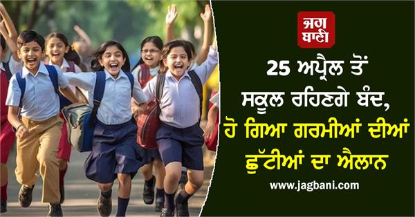 ਤੁਹਾਨੂੰ ਦੱਸ ਦੇਈਏ ਕਿ ਭਾਰੀ ਗਰਮੀ ਕਾਰਨ ਸੂਬੇ ਵਿੱਚ ਗਰਮੀ ਦੀ ਲਹਿਰ ਦੇ ਹਾਲਾਤ ਪੈਦਾ ਹੋ ਗਏ ਹਨ। ਪਾਰਾ 44 ਦੇ ਨੇੜੇ ਪਹੁੰਚ ਗਿਆ ਹੈ। ਇਸ ਨੂੰ ਧਿਆਨ ਵਿੱਚ ਰੱਖਦੇ ਹੋਏ, ਸਕੂਲ ਸਿੱਖਿਆ ਵਿਭਾਗ ਨੇ 5 ਦਿਨ ਪਹਿਲਾਂ ਗਰਮੀਆਂ ਦੀਆਂ ਛੁੱਟੀਆਂ ਦਾ ਐਲਾਨ ਕਰ ਦਿੱਤਾ ਹੈ। ਜਾਰੀ ਹੁਕਮਾਂ ਵਿੱਚ ਕਿਹਾ ਗਿਆ ਹੈ ਕਿ ਸੂਬੇ ਵਿੱਚ ਇਸ ਸਮੇਂ ਚੱਲ ਰਹੀ ਭਿਆਨਕ ਗਰਮੀ ਅਤੇ ਲੂ ਕਾਰਨ ਵਿਦਿਆਰਥੀਆਂ ਦੀ ਸਿਹਤ 'ਤੇ ਮਾੜੇ ਪ੍ਰਭਾਵਾਂ ਦੀ ਸੰਭਾਵਨਾ ਨੂੰ ਧਿਆਨ ਵਿੱਚ ਰੱਖਦੇ ਹੋਏ, ਸੂਬਾ ਸਰਕਾਰ ਨੇ ਸਰਕਾਰੀ, ਸਹਾਇਤਾ ਪ੍ਰਾਪਤ, ਗੈਰ-ਸਹਾਇਤਾ ਪ੍ਰਾਪਤ ਅਤੇ ਨਿੱਜੀ ਸਕੂਲਾਂ ਲਈ ਐਲਾਨੀਆਂ ਗਈਆਂ ਗਰਮੀਆਂ ਦੀਆਂ ਛੁੱਟੀਆਂ ਵਿੱਚ ਅੰਸ਼ਕ ਸੋਧ ਕੀਤੀ ਹੈ। ਜਿਸ ਤਹਿਤ 25 ਅਪ੍ਰੈਲ ਤੋਂ 15 ਜੂਨ ਤੱਕ ਗਰਮੀਆਂ ਦੀਆਂ ਛੁੱਟੀਆਂ ਦਾ ਐਲਾਨ ਕੀਤਾ ਗਿਆ ਹੈ। ਇਹ ਹੁਕਮ ਅਧਿਆਪਕਾਂ 'ਤੇ ਲਾਗੂ ਨਹੀਂ ਹੋਵੇਗਾ ਅਤੇ ਬਰਾਬਰ ਗਿਣਤੀ ਦੇ ਵਿਭਾਗੀ ਹੁਕਮ ਦੀਆਂ ਬਾਕੀ ਧਾਰਾਵਾਂ ਵਿੱਚ ਕੋਈ ਬਦਲਾਅ ਨਹੀਂ ਹੋਵੇਗਾ।