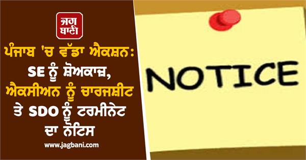 ਇਸ ਗੰਭੀਰ ਲਾਪ੍ਰਵਾਹੀ ਲਈ ਨਿਗਮ ਕਮਿਸ਼ਨਰ ਨੇ 3 ਵੱਡੇ ਐਕਸ਼ਨ ਲਏ ਹਨ। ਐੱਸ. ਈ. ਰਾਹੁਲ ਗਗਨੇਜਾ (ਓ. ਐਂਡ ਐੱਮ. ਸੈੱਲ) ਨੂੰ ਸ਼ੋਅਕਾਜ਼ ਨੋਟਿਸ ਜਾਰੀ ਕਰਕੇ 24 ਘੰਟਿਆਂ ਅੰਦਰ ਜਵਾਬ ਤਲਬ ਕੀਤਾ ਗਿਆ ਹੈ। ਐਕਸੀਅਨ ਸੁਖਵਿੰਦਰ ਸਿੰਘ ਨੂੰ ਤੁਰੰਤ ਚਾਰਜਸ਼ੀਟ ਕਰਨ ਦੇ ਹੁਕਮ ਦਿੱਤੇ ਗਏ ਹਨ ਅਤੇ ਇਸ ਮਾਮਲੇ ਦੀ ਜਾਣਕਾਰੀ ਸਰਕਾਰ ਨੂੰ ਭੇਜਣ ਨੂੰ ਵੀ ਕਿਹਾ ਗਿਆ ਹੈ। ਐੱਸ. ਡੀ. ਓ. ਗੁਰਸ਼ਰਨ ਸਿੰਘ ਨੂੰ ਨੌਕਰੀ ਤੋਂ ਟਰਮੀਨੇਟ ਕਰਨ ਸਬੰਧੀ ਨੋਟਿਸ ਜਾਰੀ ਕਰਨ ਦੇ ਹੁਕਮ ਦਿੱਤੇ ਗਏ ਹਨ।