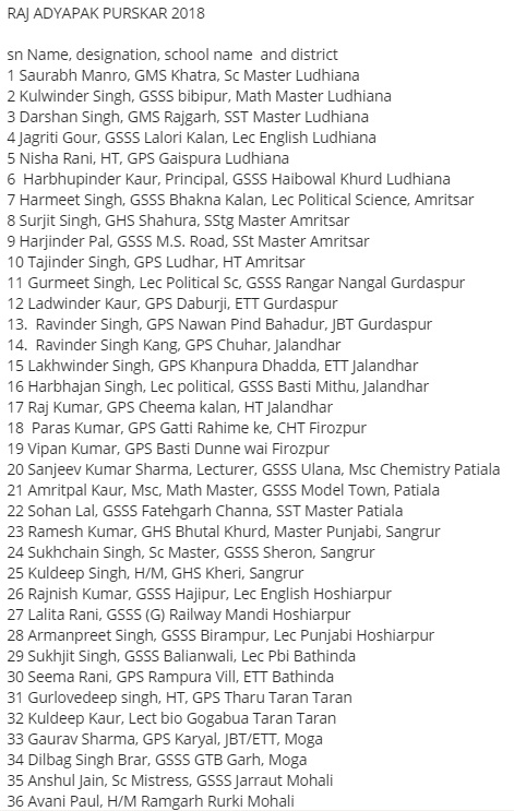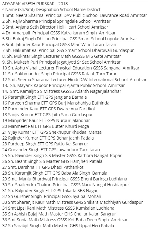 ਚੰਡੀਗੜ੍ਹ,(ਅਮਰਿੰਦਰ)— ਅਧਿਆਪਕ ਦਿਵਸ ਮੌਕੇ 104 ਅਧਿਆਪਕਾਂ ਨੂੰ ਸਨਮਾਨਤ ਕੀਤਾ ਜਾਵੇਗਾ। ਸਿੱਖਿਆ ਵਿਭਾਗ ਵਲੋਂ 51 ਅਧਿਆਪਕਾਂ ਦਾ ਰਾਜ ਅਧਿਆਪਕ ਪੁਰਸਕਾਰ ਨਾਲ ਸਨਮਾਨ ਕੀਤਾ ਜਾਵੇਗਾ ਅਤੇ 53 ਅਧਿਆਪਕਾਂ ਦਾ ਅਧਿਆਪਕ ਵਿਸ਼ੇਸ਼ ਪੁਰਸਕਾਰ ਨਾਲ ਸਨਮਾਨ ਹੋਵੇਗਾ। ਸਿੱਖਿਆ ਮੰਤਰੀ ਸ੍ਰੀ ਓਮ ਪ੍ਰਕਾਸ਼ ਸੋਨੀ ਵਲੋਂ ਅਧਿਆਪਕ ਦਿਵਸ 'ਤੇ ਸਨਮਾਨਤ ਹੋਣ ਵਾਲੇ ਅਧਿਆਪਕ ਨੂੰ ਮੁਬਾਰਕਬਾਦ ਦਿੱਤੀ ਗਈ ਹੈ। ਇਹ ਸਨਮਾਨ ਸਮਾਰੋਹ ਆਈ. ਵੀ. ਵਰਲਡ ਸਕੂਲ ਜਲੰਧਰ ਵਿਖੇ ਆਯੋਜਿਤ ਕੀਤਾ ਜਾ ਰਿਹਾ ਹੈ, ਜਿਸ 'ਚ ਮੁੱਖ ਮਹਿਮਾਨ ਵਜੋਂ ਸਿੱਖਿਆ ਮੰਤਰੀ ਪੰਜਾਬ ਓਮ ਪ੍ਰਕਾਸ਼ ਸੋਨੀ ਸ਼ਾਮਲ ਹੋਣਗੇ।