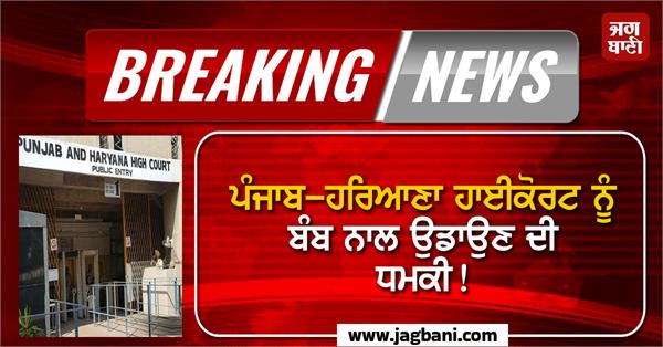 ਚੰਡੀਗੜ੍ਹ (ਵੈੱਬ ਡੈਸਕ, ਸੁਸ਼ੀਲ, ਹਾਂਡਾ) : ਚੰਡੀਗੜ੍ਹ 'ਚ ਪੰਜਾਬ ਅਤੇ ਹਰਿਆਣਾ ਹਾਈਕੋਰਟ ਨੂੰ ਬੰਬ ਨਾਲ ਉਡਾਉਣ ਦੀ ਧਮਕੀ ਮਿਲਣ ਦੀ ਵੱਡੀ ਖ਼ਬਰ ਸਾਹਮਣੇ ਆਈ ਹੈ। ਇਸ ਸਬੰਧੀ ਇਕ ਮੇਲ ਪ੍ਰਾਪਤ ਹੋਈ ਹੈ, ਜਿਸ ਤੋਂ ਬਾਅਦ ਹਾਈਕੋਰਟ ਅਤੇ ਇਸ ਦੇ ਆਸ-ਪਾਸ ਦੇ ਇਲਾਕੇ ਨੂੰ ਖ਼ਾਲੀ ਕਰਵਾਇਆ ਗਿਆ ਹੈ। ਕੋਰਟ ਰੂਮ ਅਤੇ ਪੂਰੀ ਇਮਾਰਤ ਖ਼ਾਲੀ ਕਰਵਾ ਲਈ ਗਈ ਹੈ।