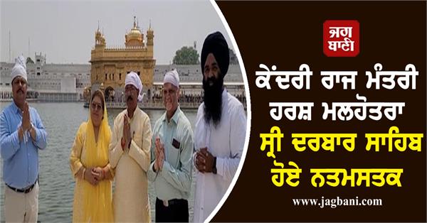 ਅੰਮ੍ਰਿਤਸਰ (ਬਿਊਰੋ)- ਕੇਂਦਰੀ ਸੜਕ ਆਵਾਜਾਈ ਅਤੇ ਹਾਈਵੇਅ ਰਾਜ ਮੰਤਰੀ ਹਰਸ਼ ਮਲਹੋਤਰਾ ਸ੍ਰੀ ਹਰਿਮੰਦਰ ਸਾਹਿਬ ਵਿਖੇ ਨਤਮਸਤਕ ਹੋਏ। ਇਸ ਮੌਕੇ ਉਨ੍ਹਾਂ ਨੇ ਸ੍ਰੀ ਹਰਿਮੰਦਰ ਸਾਹਿਬ ਵਿਖੇ ਗੁਰਬਾਣੀ ਕੀਰਤਨ ਸਰਵਣ ਕੀਤਾ ਅਤੇ ਸਰਬਤ ਦੇ ਭਲੇ ਦੀ ਅਰਦਾਸ ਕੀਤੀ। ਸ੍ਰੀ ਦਰਬਾਰ ਸਾਹਿਬ ਦੇ ਸੂਚਨਾ ਕੇਂਦਰ ਵਿਖੇ ਸ਼੍ਰੋਮਣੀ ਕਮੇਟੀ ਅਧਿਕਾਰੀਆਂ ਵੱਲੋਂ ਕੇਂਦਰੀ ਰਾਜ ਮੰਤਰੀ ਨੂੰ ਸ੍ਰੀ ਦਰਬਾਰ ਸਾਹਿਬ ਦੀ ਤਸਵੀਰ ਅਤੇ ਧਾਰਮਿਕ ਪੁਸਤਕਾਂ ਦਾ ਸੈੱਟ ਭੇਂਟ ਕਰਕੇ ਸਨਮਾਨਤ ਕੀਤਾ ਗਿਆ।