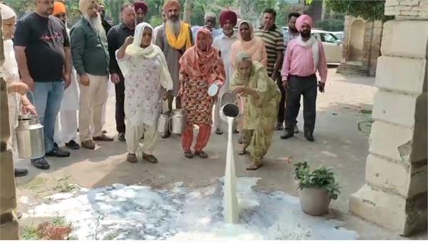 ਜਲੰਧਰ (ਸੋਨੂੰ)- ਜਲੰਧਰ ਦੇ ਨਾਮਦੇਵ ਚੌਂਕ ਨੇੜੇ ਦੁੱਧ ਉਤਪਾਦਕਾਂ ਨੇ ਸਹਿਕਾਰੀ ਵਿਭਾਗ ਦੇ ਦਫ਼ਤਰ ਦੇ ਬਾਹਰ ਧਰਨਾ ਦਿੱਤਾ। ਦਰਅਸਲ ਦੁੱਧ ਉਤਪਾਦਕਾਂ ਦੀ ਬਕਾਇਆ ਰਕਮ ਪੈਂਡਿੰਗ ਹੈ, ਜੋ ਉਨ੍ਹਾਂ ਨੂੰ ਨਹੀਂ ਦਿੱਤੀ ਜਾ ਰਹੀ। ਇਸ ਨੂੰ ਲੈ ਕੇ ਦੁੱਧ ਉਤਪਾਦਕਾਂ ਵਿੱਚ ਗੁੱਸਾ ਹੈ। ਗੁੱਸੇ ਵਿੱਚ ਆਏ ਦੁੱਧ ਉਤਪਾਦਕਾਂ ਨੇ ਸਹਿਕਾਰੀ ਵਿਭਾਗ ਦੇ ਦਫ਼ਤਰ ਦੇ ਬਾਹਰ ਦੁੱਧ ਸੁੱਟ ਕੇ ਆਪਣਾ ਗੁੱਸਾ ਜ਼ਾਹਰ ਕੀਤਾ ਹੈ।