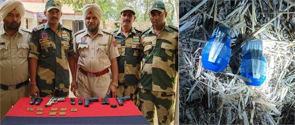 ਅੰਮ੍ਰਿਤਸਰ (ਨੀਰਜ)- ਪਾਕਿਸਤਾਨੀ ਏਜੰਸੀਆਂ ਲਗਾਤਾਰ ਪੰਜਾਬ 'ਚ ਦਹਿਸ਼ਤ ਫੈਲਾਉਣ ਦੀ ਕੋਸ਼ਿਸ਼ ਕਰ ਰਹੀਆਂ ਹਨ ਪਰ ਬੀ. ਐੱਸ. ਐੱਫ. ਵੱਲੋਂ ਇਸ ਸਾਜ਼ਿਸ਼ ਨੂੰ ਸਫਲਤਾਪੂਰਵਕ ਨਾਕਾਮ ਕੀਤਾ ਗਿਆ ਹੈ। ਜਾਣਕਾਰੀ ਅਨੁਸਾਰ ਇੱਕ ਵਾਰ ਫਿਰ ਬੀ. ਐੱਸ. ਐੱਫ. ਅੰਮ੍ਰਿਤਸਰ ਸੈਕਟਰ ਦੀ ਟੀਮ ਨੇ ਸਰਹੱਦੀ ਪਿੰਡ ਬੈਰੋਪਾਲ ਦੇ ਇਲਾਕੇ 'ਚ ਇਕ ਡਰੋਨ ਰਾਹੀਂ ਸੁੱਟੀ ਗਈ ਖੇਪ ਬਰਾਮਦ ਕੀਤੀ ਹੈ। ਜਿਸ 'ਚ ਦੋ ਹੈਂਡ ਗ੍ਰਨੇਡ, ਚਾਰ ਪਿਸਤੌਲ, 6 ਮੈਗਜ਼ੀਨ ਅਤੇ 50 ਜ਼ਿੰਦਾ ਕਾਰਤੂਸ ਜ਼ਬਤ ਕੀਤੇ ਗਏ ਹਨ।