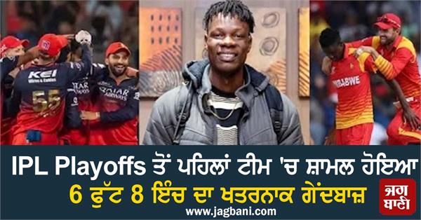 ਸਪੋਰਟਸ ਡੈਸਕ- ਪਲੇਆਫ ਤੋਂ ਪਹਿਲਾਂ, ਇੱਕ 6 ਫੁੱਟ 8 ਇੰਚ ਲੰਬਾ ਖਤਰਨਾਕ ਤੇਜ਼ ਗੇਂਦਬਾਜ਼ ਰਾਇਲ ਚੈਲੰਜਰਜ਼ ਬੈਂਗਲੁਰੂ ਦੇ ਕੈਂਪ ਵਿੱਚ ਦਾਖਲ ਹੋ ਗਿਆ ਹੈ। ਇਹ ਗੇਂਦਬਾਜ਼ ਜ਼ਿੰਬਾਬਵੇ ਦਾ ਬਲੈਸਿੰਗ ਮੁਜ਼ਰਬਾਨੀ ਹੈ। ਮੁਜ਼ਰਬਾਨੀ ਆਪਣੀ ਗਤੀ ਲਈ ਜਾਣਿਆ ਜਾਂਦਾ ਹੈ ਅਤੇ ਉਸਨੂੰ ਆਰਸੀਬੀ ਨੇ ਲੁੰਗੀ ਨਗੀਦੀ ਦੇ ਬਦਲ ਵਜੋਂ ਸਾਈਨ ਕੀਤਾ ਹੈ। ਬੰਗਲੁਰੂ ਦੀ ਟੀਮ, ਜਿਸ ਨੇ ਪਹਿਲਾਂ ਹੀ ਪਲੇਆਫ ਟਿਕਟ ਹਾਸਲ ਕਰ ਲਈ ਹੈ, ਹੁਣ ਉਸਦੀ ਨਜ਼ਰ ਚੋਟੀ ਦੇ 2 ਵਿੱਚ ਪਹੁੰਚਣ 'ਤੇ ਹੈ। ਆਰਸੀਬੀ ਨੂੰ ਇੱਕ ਬਹੁਤ ਹੀ ਮਹੱਤਵਪੂਰਨ ਮੈਚ ਵਿੱਚ ਲਖਨਊ ਸੁਪਰ ਜਾਇੰਟਸ ਦਾ ਸਾਹਮਣਾ ਕਰਨਾ ਪਵੇਗਾ। ਲਖਨਊ ਵਿਰੁੱਧ ਜਿੱਤ ਟੀਮ ਦੀ ਚੋਟੀ ਦੇ ਦੋ ਵਿੱਚ ਜਗ੍ਹਾ ਯਕੀਨੀ ਬਣਾ ਦੇਵੇਗੀ।