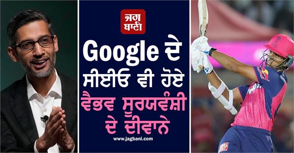 ਸਪੋਰਟਸ ਡੈਸਕ : ਵੈਭਵ ਸੂਰਯਵੰਸ਼ੀ ਨੇ ਆਈਪੀਐੱਲ ਇਤਿਹਾਸ ਵਿੱਚ ਡੈਬਿਊ ਕਰਨ ਵਾਲਾ ਸਭ ਤੋਂ ਘੱਟ ਉਮਰ ਦਾ ਖਿਡਾਰੀ ਬਣ ਕੇ ਇਤਿਹਾਸ ਰਚ ਦਿੱਤਾ ਹੈ। ਬਿਹਾਰ ਦੇ ਇਸ ਮੁੰਡੇ ਨੇ 14 ਸਾਲ ਅਤੇ 23 ਦਿਨ ਦੀ ਉਮਰ ਵਿੱਚ ਰਾਜਸਥਾਨ ਰਾਇਲਜ਼ ਲਈ ਲਖਨਊ ਸੁਪਰ ਜਾਇੰਟਸ ਵਿਰੁੱਧ ਆਪਣਾ ਆਈਪੀਐੱਲ ਡੈਬਿਊ ਕੀਤਾ। ਸਭ ਤੋਂ ਵੱਡੀ ਗੱਲ ਇਹ ਸੀ ਕਿ ਉਸਨੇ ਆਪਣੀ ਪਹਿਲੀ ਹੀ ਗੇਂਦ 'ਤੇ ਇੱਕ ਵੱਡਾ ਛੱਕਾ ਮਾਰਿਆ। ਉਸਦੇ ਦਬਦਬੇ ਵਾਲੇ ਅੰਦਾਜ਼ ਨੂੰ ਦੇਖ ਕੇ ਹਰ ਕੋਈ ਹੈਰਾਨ ਰਹਿ ਗਿਆ। ਇੱਥੋਂ ਤੱਕ ਕਿ ਗੂਗਲ ਦੇ ਸੀਈਓ ਸੁੰਦਰ ਪਿਚਾਈ ਵੀ ਵੈਭਵ ਦੇ ਪ੍ਰਸ਼ੰਸਕ ਬਣ ਗਏ ਹਨ। ਉਹ ਵੈਭਵ ਨੂੰ ਇੰਨੀ ਛੋਟੀ ਉਮਰ ਵਿੱਚ ਵੱਡੇ ਗੇਂਦਬਾਜ਼ਾਂ ਵਿਰੁੱਧ ਨਿਡਰਤਾ ਨਾਲ ਖੇਡਦੇ ਦੇਖ ਕੇ ਬਹੁਤ ਪ੍ਰਭਾਵਿਤ ਹੋਏ ਅਤੇ ਉਸਦੀ ਕਾਫ਼ੀ ਪ੍ਰਸ਼ੰਸਾ ਕੀਤੀ।