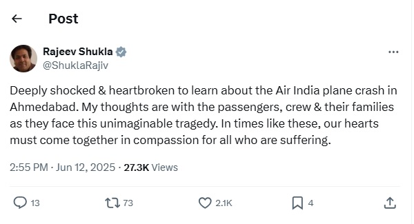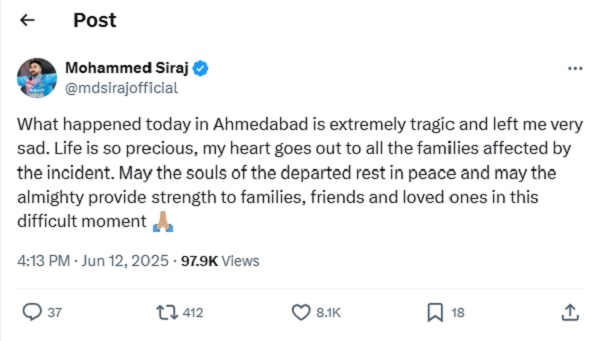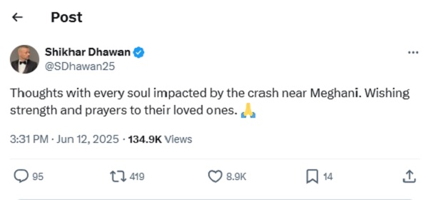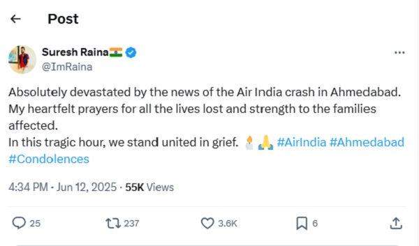 ਹਾਦਸੇ ਦੀਆਂ ਫੋਟੋਆਂ ਅਤੇ ਵੀਡੀਓ ਸੋਸ਼ਲ ਮੀਡੀਆ 'ਤੇ ਵਾਇਰਲ ਹੋਣ ਲੱਗ ਗਈਆਂ ਹਨ। ਵੀਡੀਓਜ਼ ਵਿੱਚ ਜਹਾਜ਼ ਨੂੰ ਉਡਾਣ ਭਰਨ ਤੋਂ ਤੁਰੰਤ ਬਾਅਦ ਹੇਠਾਂ ਡਿੱਗਦੇ ਦੇਖਿਆ ਜਾ ਸਕਦਾ ਹੈ। ਜਿਵੇਂ ਹੀ ਜਹਾਜ਼ ਹੇਠਾਂ ਡਿੱਗਦਾ ਹੈ, ਇੱਕ ਜ਼ੋਰਦਾਰ ਕਰੈਸ਼ ਦੀ ਆਵਾਜ਼ ਆਉਂਦੀ ਹੈ ਅਤੇ ਸੰਘਣਾ ਧੂੰਆਂ ਅਸਮਾਨ ਵੱਲ ਉੱਡਣਾ ਸ਼ੁਰੂ ਹੋ ਜਾਂਦਾ ਹੈ, ਜਿਸ ਨਾਲ ਹਫੜਾ-ਦਫੜੀ ਮਚ ਜਾਂਦੀ ਹੈ। ਇਸ ਹਾਦਸੇ ਨਾਲ ਪੂਰੇ ਦੇਸ਼ ਵਿੱਚ ਸੋਗ ਪਸਰ ਗਿਆ ਹੈ। ਸੋਸ਼ਲ ਮੀਡੀਆ 'ਤੇ ਪ੍ਰਸ਼ੰਸਕਾਂ ਦੇ ਨਾਲ-ਨਾਲ ਖੇਡ ਜਗਤ ਨੇ ਵੀ ਇਸ ਹਾਦਸੇ 'ਤੇ ਦੁੱਖ ਪ੍ਰਗਟ ਕੀਤਾ ਹੈ।
