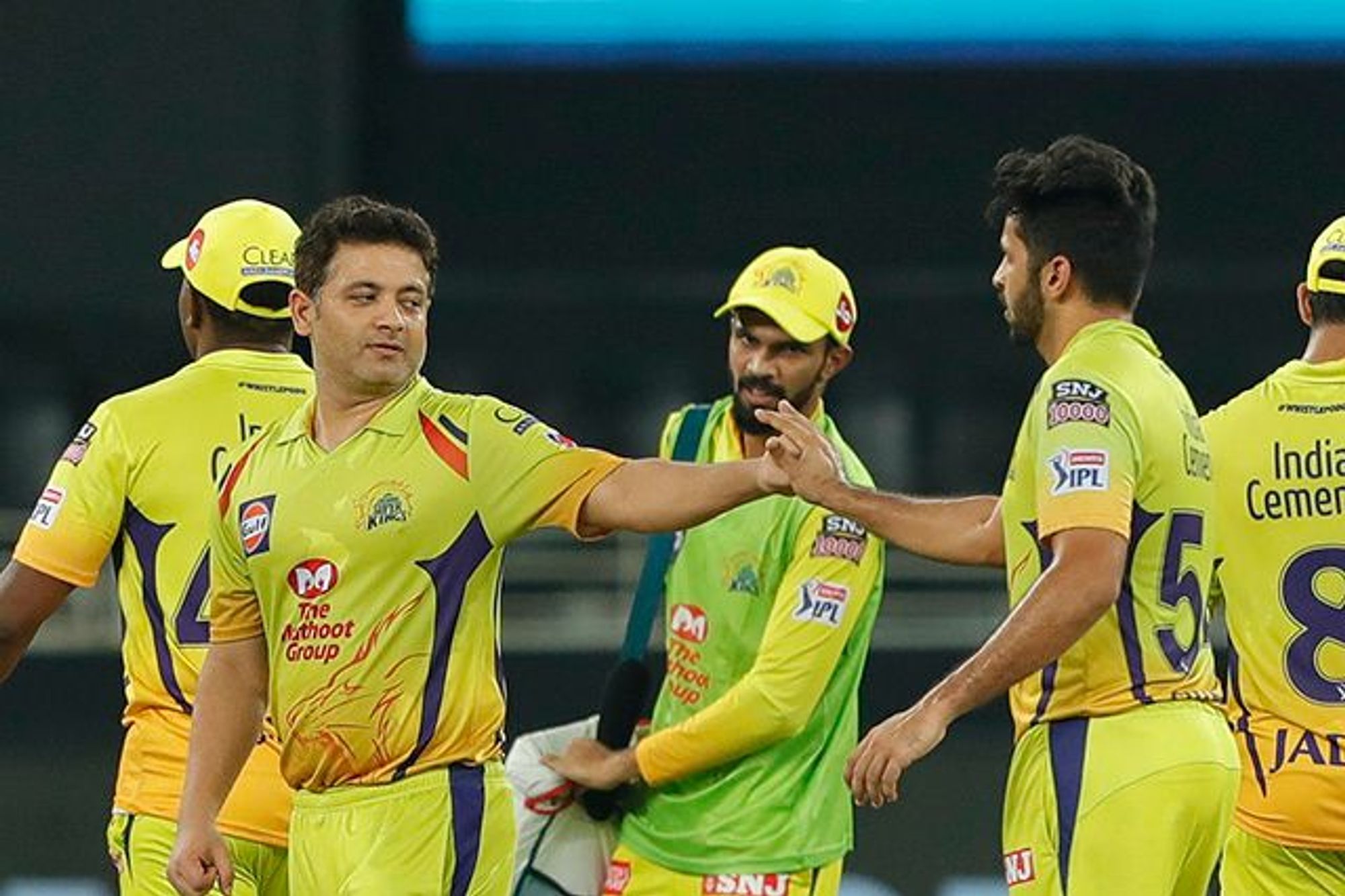 ਚੇਨਈ ਸੁਪਰ ਕਿੰਗਜ਼- ਮਹਿੰਦਰ ਸਿੰਘ ਧੋਨੀ (ਕਪਤਾਨ), ਮੁਰਲੀ ਵਿਜੇ, ਅੰਬਾਤੀ ਰਾਇਡੂ, ਫਾਫ ਡੂ ਪਲੇਸਿਸ, ਸ਼ੇਨ ਵਾਟਸਨ, ਕੇਦਾਰ ਜਾਧਵ, ਡਵੇਨ ਬ੍ਰਾਵੋ, ਰਵਿੰਦਰ ਜਡੇਜਾ, ਲੂੰਗੀ ਇਨਗਿਡੀ, ਦੀਪਕ ਚਾਹਰ, ਪਿਊਸ਼ ਚਾਵਲਾ, ਇਮਰਾਨ ਤਾਹਿਰ, ਮਿਸ਼ੇਲ ਸੈਂਟਨਰ, ਜੋਸ਼ ਹੇਜਲਵੁਡ, ਸ਼ਾਰਦੁਲ ਠਾਕੁਰ, ਸੈਮ ਕਿਊਰਨ, ਐੱਨ. ਜਗਦੀਸ਼ਨ, ਕੇ. ਐੱਮ. ਆਸਿਫ, ਮੋਨੂ ਕੁਮਾਰ, ਆਰ. ਸਾਈ. ਕਿਸ਼ੋਰ, ਰਿਤੁਰਾਜ ਗਾਇਕਵਾੜ, ਕਰਣ ਸ਼ਰਮਾ।