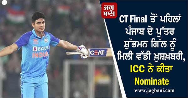 ਸ਼ੁਭਮਨ ਗਿੱਲ ਆਈਸੀਸੀ ਪਲੇਅਰ ਆਫ ਦਿ ਮੰਥ ਲਈ ਨਾਮਜ਼ਦ ਹੋਏ