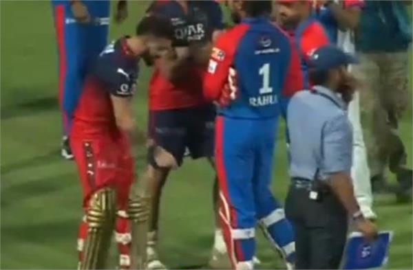 ਰਜਤ ਪਾਟੀਦਾਰ ਦੀ ਅਗਵਾਈ ਵਾਲੀ ਟੀਮ ਲਈ 163 ਦੌੜਾਂ ਦੇ ਟੀਚੇ ਦਾ ਪਿੱਛਾ ਕਰਦੇ ਹੋਏ, ਵਿਰਾਟ ਕੋਹਲੀ ਨੇ 47 ਗੇਂਦਾਂ 'ਤੇ 51 ਦੌੜਾਂ ਬਣਾਈਆਂ ਅਤੇ ਕਰੁਣਾਲ ਪੰਡਯਾ (47 ਗੇਂਦਾਂ 'ਤੇ 73 ਦੌੜਾਂ) ਨਾਲ ਚੌਥੀ ਵਿਕਟ ਲਈ 119 ਦੌੜਾਂ ਦੀ ਸਾਂਝੇਦਾਰੀ ਕੀਤੀ। ਆਈਪੀਐਲ 2025 ਵਿੱਚ ਆਰਸੀਬੀ ਦੀ ਸੱਤਵੀਂ ਜਿੱਤ ਵਿੱਚ 51 ਦੌੜਾਂ ਬਣਾਉਣ ਤੋਂ ਬਾਅਦ, ਕੋਹਲੀ ਕੇਐਲ ਰਾਹੁਲ ਨੂੰ 'ਇਹ ਮੇਰਾ ਮੈਦਾਨ ਹੈ' ਦੇ ਜਸ਼ਨ ਨਾਲ ਛੇੜਦਾ ਹੈ। ਇੰਟਰਨੈਟ 'ਤੇ ਵਾਇਰਲ ਹੋ ਰਹੇ ਇੱਕ ਵੀਡੀਓ ਵਿੱਚ, ਕੋਹਲੀ ਨੂੰ ਰਾਹੁਲ ਨਾਲ ਗੱਲਬਾਤ ਕਰਦੇ ਹੋਏ ਅਤੇ ਉਸਦੇ ਵਾਇਰਲ ਜਸ਼ਨ ਦੀ ਨਕਲ ਕਰਦੇ ਹੋਏ ਦੇਖਿਆ ਜਾ ਸਕਦਾ ਹੈ।