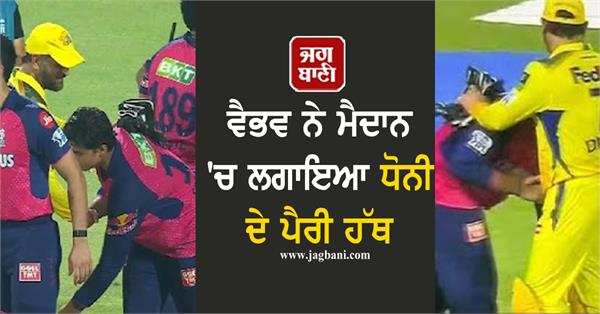 ਸਪੋਰਟਸ ਡੈਸਕ: ਦਿੱਲੀ ਦੇ ਅਰੁਣ ਜੇਤਲੀ ਸਟੇਡੀਅਮ ਵਿੱਚ ਦਰਸ਼ਕਾਂ ਨੇ ਇੱਕ ਦਿਲਚਸਪ ਪਲ ਦੇਖਿਆ ਜਦੋਂ ਰਾਜਸਥਾਨ ਰਾਇਲਜ਼ ਦੇ ਨੌਜਵਾਨ ਓਪਨਰ ਵੈਭਵ ਸੂਰਿਆਵੰਸ਼ੀ ਨੇ ਮੈਚ ਜਿੱਤਣ ਤੋਂ ਬਾਅਦ ਚੇਨਈ ਸੁਪਰ ਕਿੰਗਜ਼ ਦੇ ਕਪਤਾਨ ਮਹਿੰਦਰ ਸਿੰਘ ਧੋਨੀ ਦੇ ਪੈਰ ਛੂਹੇ। ਧੋਨੀ ਕਈ ਕ੍ਰਿਕਟਰਾਂ ਲਈ ਪ੍ਰੇਰਨਾ ਸਰੋਤ ਰਹੇ ਹਨ। ਇਸ ਦੀ ਇੱਕ ਉਦਾਹਰਣ ਰਾਜਸਥਾਨ ਬਨਾਮ ਚੇਨਈ ਮੈਚ ਵਿੱਚ ਦੇਖੀ ਗਈ। ਚੇਨਈ ਵੱਲੋਂ 188 ਦੌੜਾਂ ਦਾ ਟੀਚਾ ਦਿੱਤੇ ਜਾਣ ਤੋਂ ਬਾਅਦ ਵੈਭਵ ਨੇ ਉਕਤ ਮੈਚ ਵਿੱਚ ਰਾਜਸਥਾਨ ਨੂੰ ਸ਼ਾਨਦਾਰ ਸ਼ੁਰੂਆਤ ਦਿੱਤੀ ਸੀ। ਵੈਭਵ ਨੇ ਰਾਜਸਥਾਨ ਨੂੰ ਸ਼ੁਰੂ ਤੋਂ ਹੀ ਖੇਡ ਵਿੱਚ ਬਣਾਈ ਰੱਖਿਆ ਅਤੇ 33 ਗੇਂਦਾਂ ਵਿੱਚ ਚਾਰ ਚੌਕਿਆਂ ਅਤੇ ਚਾਰ ਛੱਕਿਆਂ ਦੀ ਮਦਦ ਨਾਲ 57 ਦੌੜਾਂ ਬਣਾਈਆਂ।