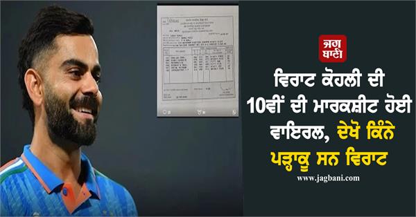 ਇਹ ਵਿਰਾਟ ਕੋਹਲੀ ਦੀ 10ਵੀਂ ਦੀ ਮਾਰਕਸ਼ੀਟ ਹੈ